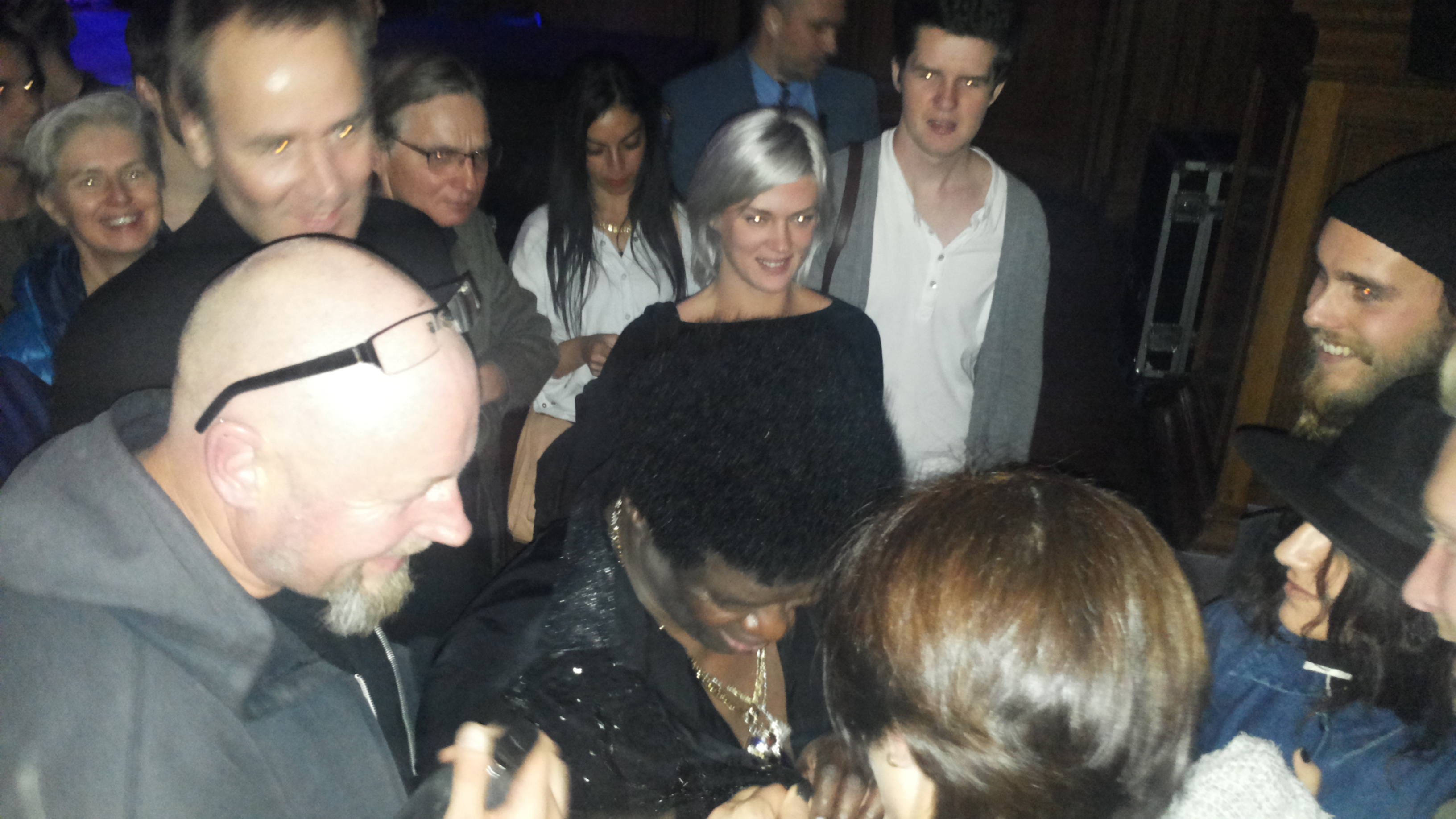 Bonusinfo: När Charles Bradley har kramat sig igenom nästan alla fastnar hans stora halssmycke i en kvinnas kläder och de båda får tråckla lite innan de kan skiljas åt. De båda ler åt fadäsen under tråcklandet medan Bradley utbrister “Sugar, I guess you’re comin’ with me tonight!” och drar iväg en hes och hjärtlig skrattsalva med hela överkroppen. Underbart.